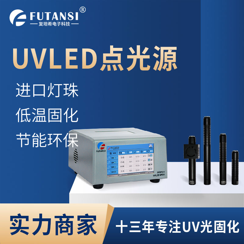 UVLED点光源是一种采用高能量紫外线发光二*管(单颗灯珠灯珠)发出光斑呈点状的UV光源,用来对UV胶水、UV油墨等UV光感材料的快速固化,也称为“紫外线固化光源”。